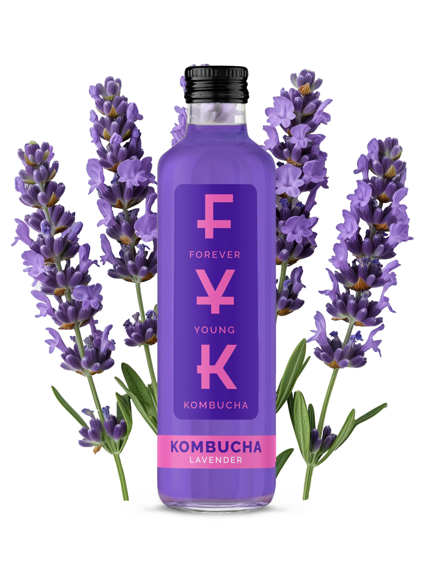 Natürliche Zutaten: gefiltertes Wasser, konzentrierter Apfelsaft (20 %), grüner Tee, Clitoria-Blüten, schwarzer Tee, Lavendelblüten, Zucker, Kombucha-Kultur.