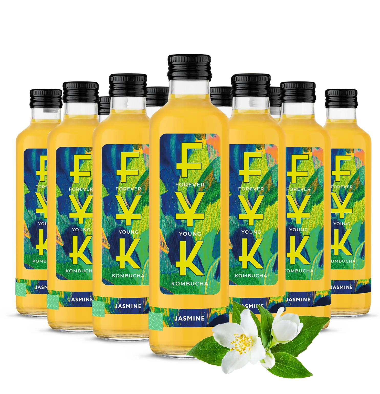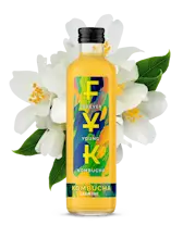Natürliche Zutaten: gefiltertes Wasser, konzentrierter Apfelsaft (20%), grüner Tee, Jasminblüten, Zucker, Kombucha-Kultur.
