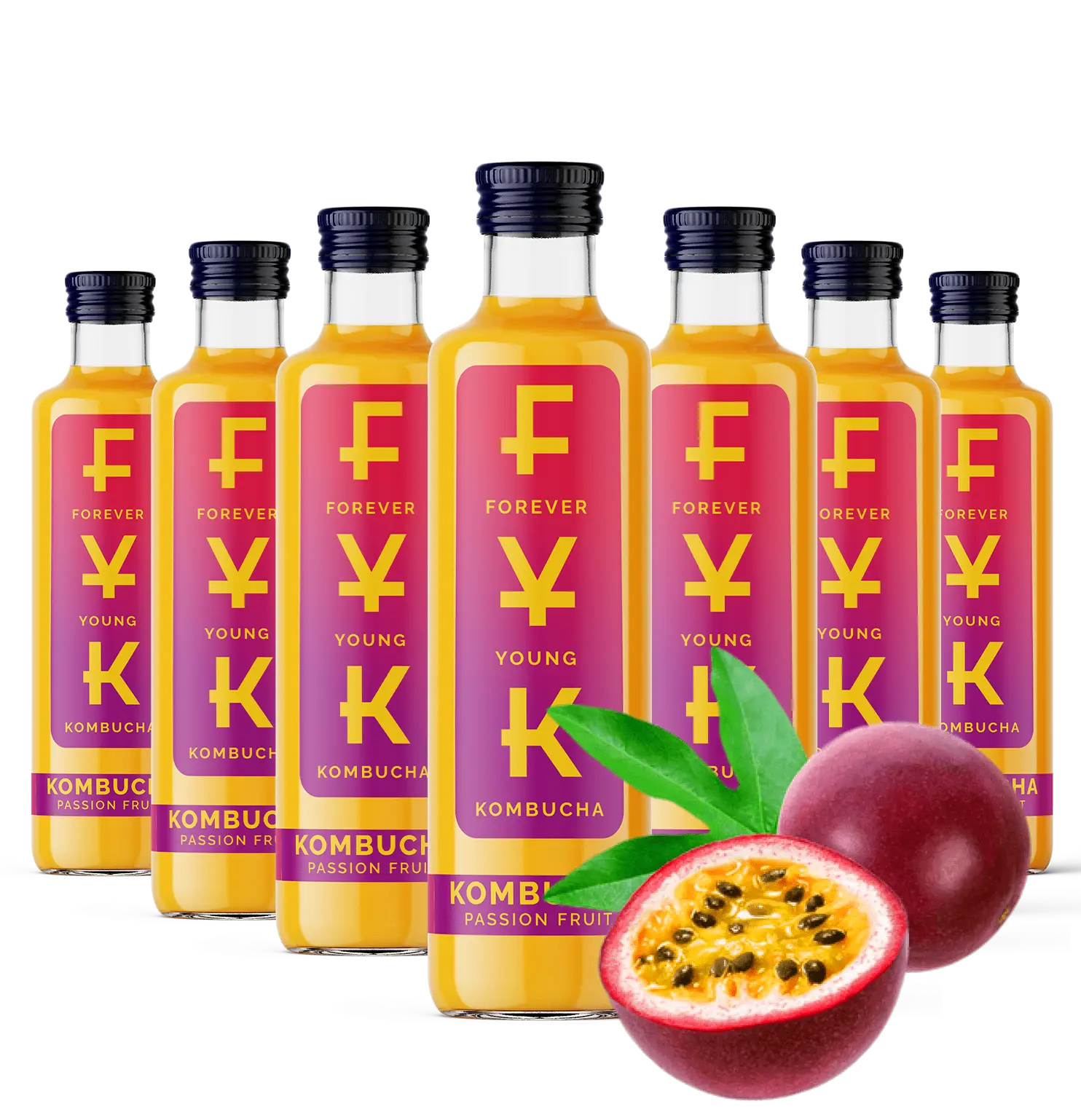 Natürliche Zutaten: gefiltertes Wasser, konzentrierter Apfelsaft (20 %), grüner Tee, Passionsfrucht, Zucker, Zitronensaft, Kombucha-Kultur.